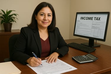 Con una preparación académica ejemplar y una amplia experiencia en el área financiera, la Lic. Conny Prado ofrece servicios especializados en Income Tax, brindando asesoría y soluciones precisas tanto a individuos como a negocios que buscan cumplir correctamente con sus responsabilidades fiscales. Su profesionalismo, discreción y trato amable le han permitido construir una clientela fiel que reconoce en ella a una experta de confianza.
